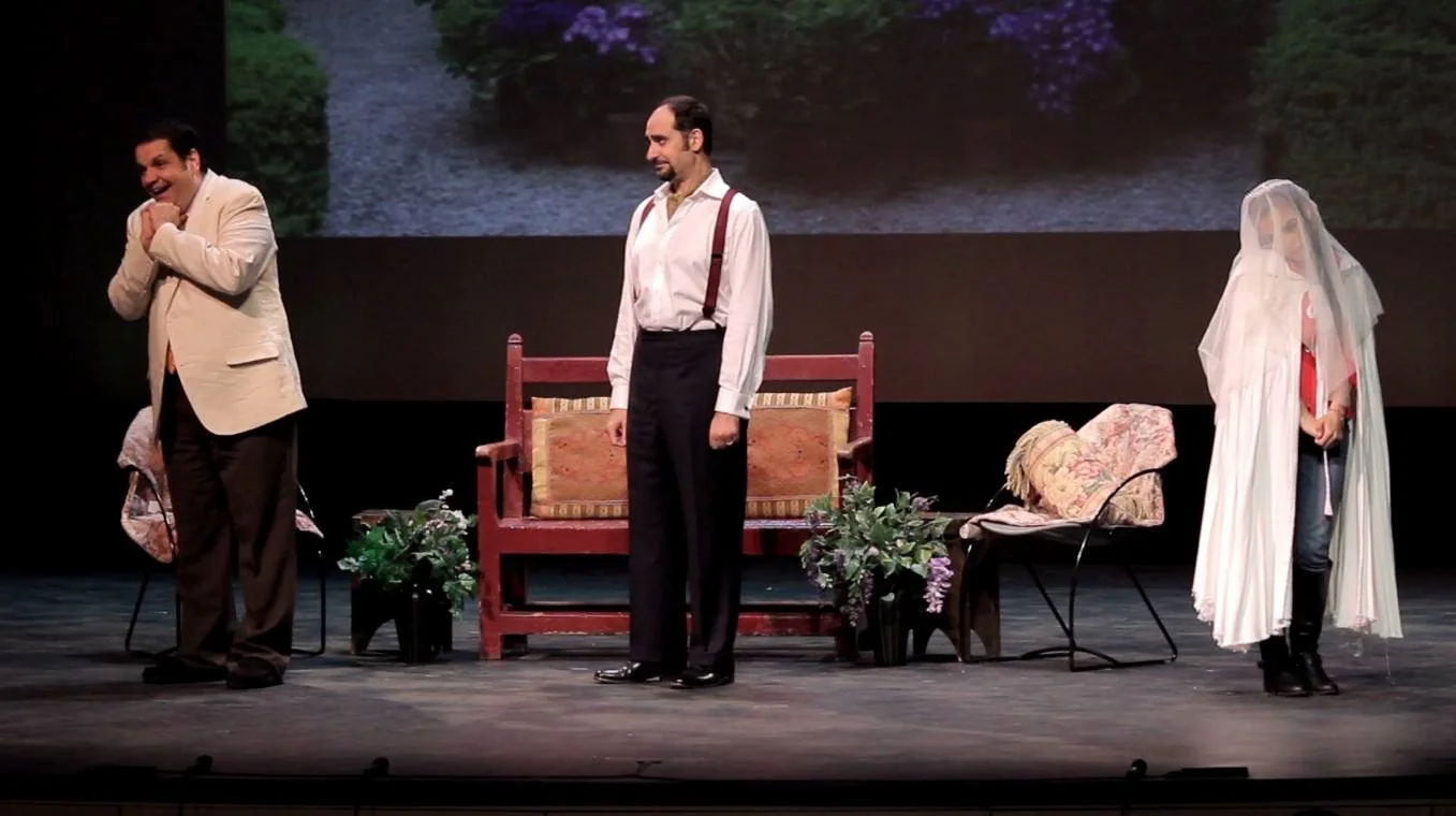 Don Pasquale, Act 2 scene 2: Carlos Conde, Marco Nistico, Meechot Marrero. At the Kimball Theatre, Williamsburg, VA, April 9, 2014.